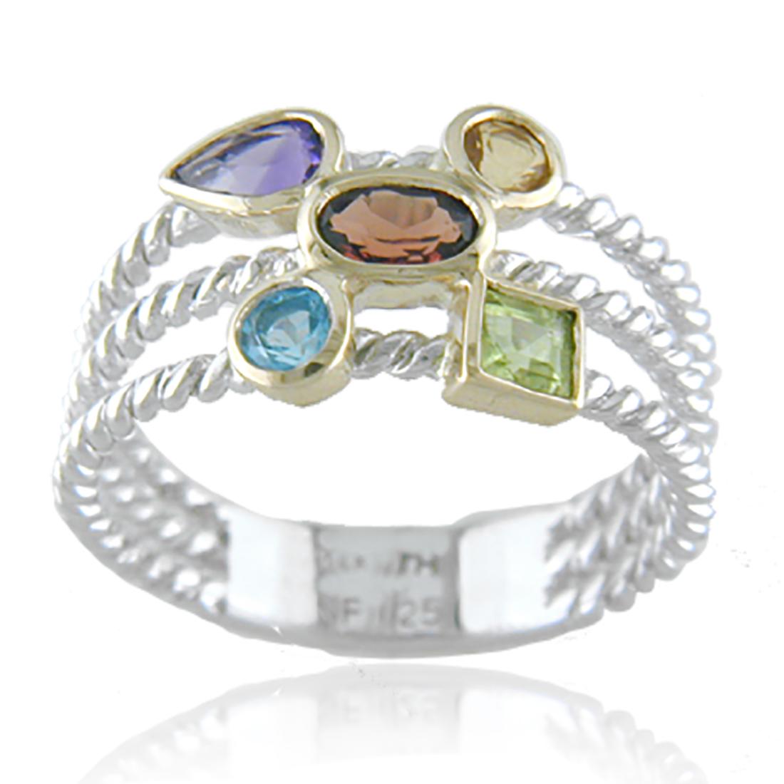 14K and Silver Gemstone Two-Tone Ring SZ 6