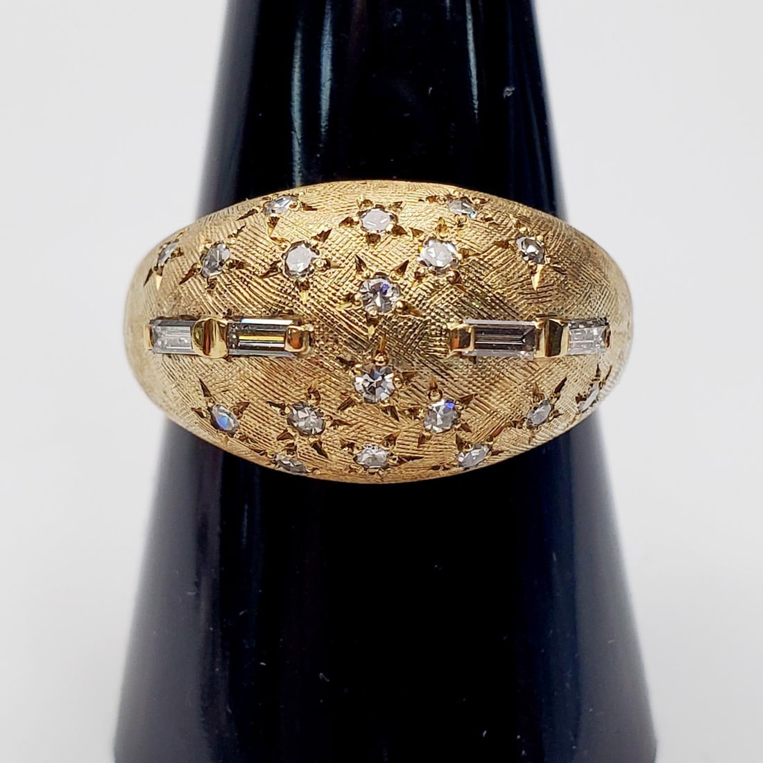 14K Brushed Gold Ring w/ Diamonds