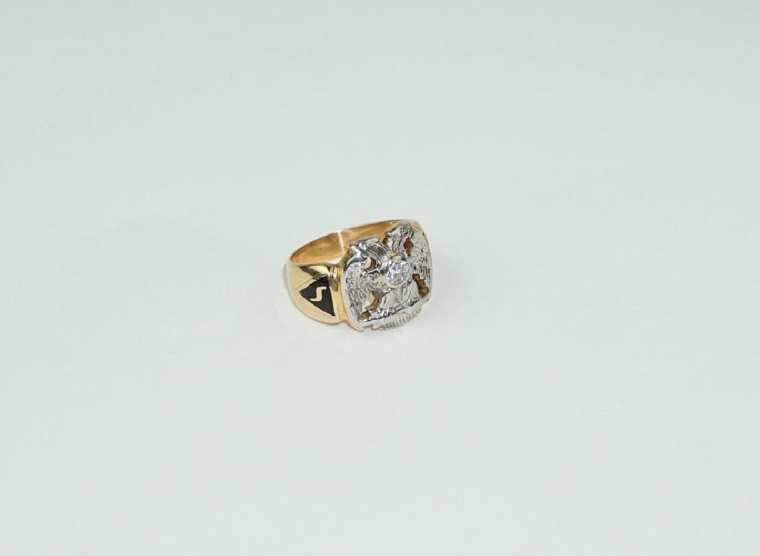 14K DIAMOND 32ND DEGREE MASONIC SCOTTISH RITE RING
