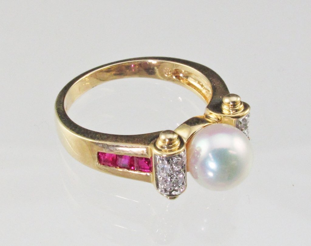14K Diamond and Ruby Pearl Ring