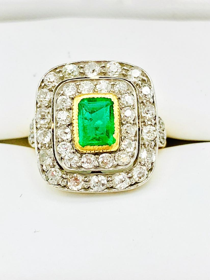 14K DIAMOND EMERALD VINATGE 2 CTTW RING