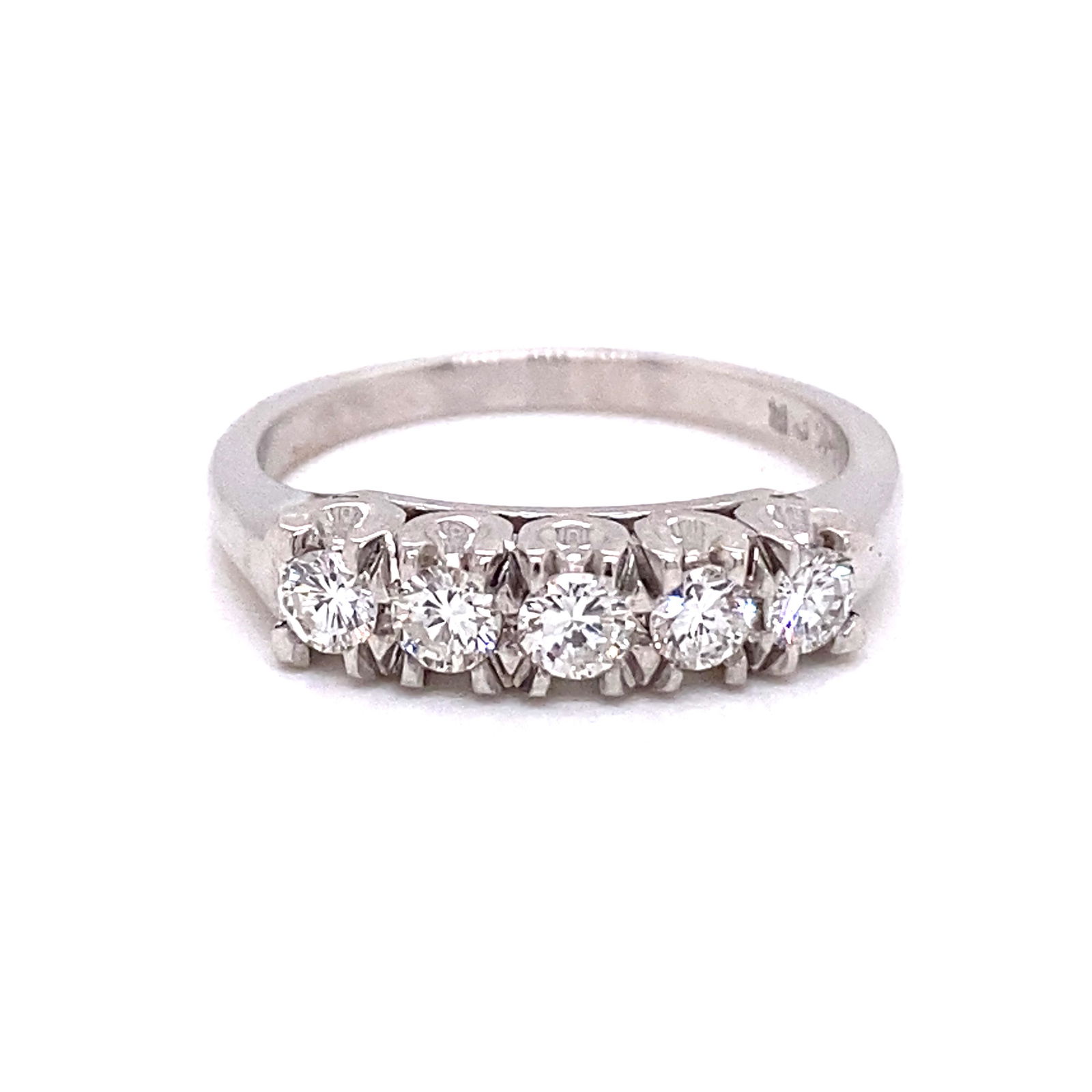 14k White Gold 1.26ctw 7 Diamond Band Ring Size 6.5