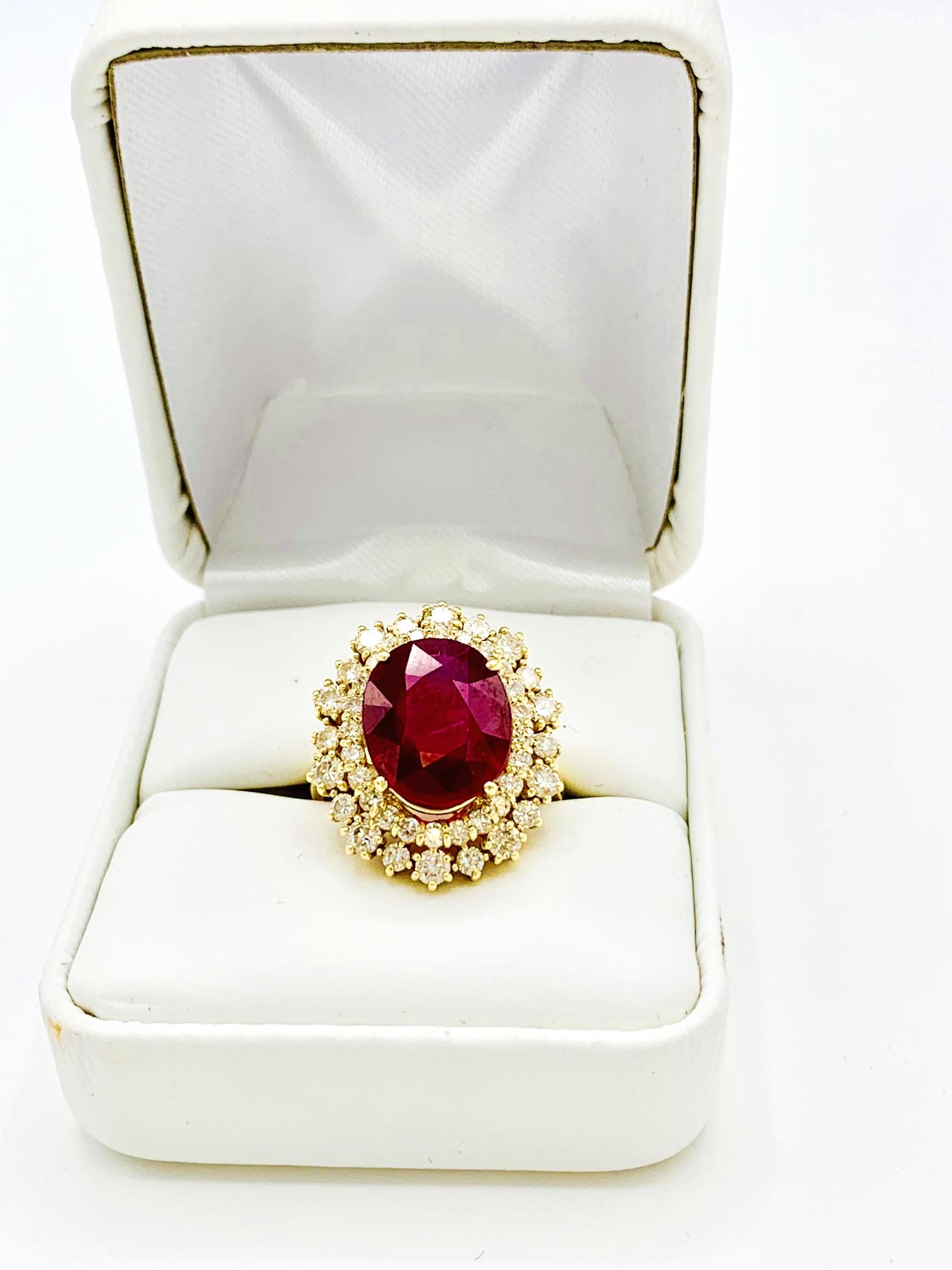 14K Yellow Gold 11.78ct Ruby and 1.48ct Diamond Ring