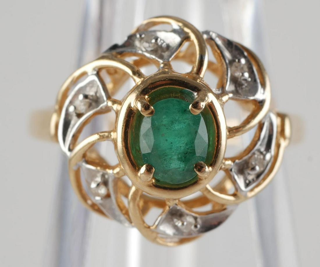 14K Emerald and Diamond Ring Size 6