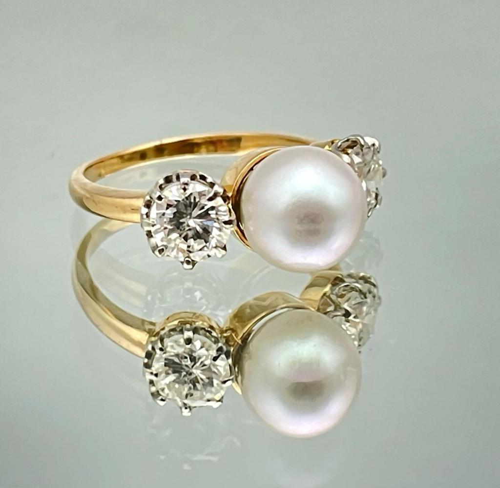 VINTAGE ”TOI ET MOI” 14K GOLD PEARL & DIAMOND RING.