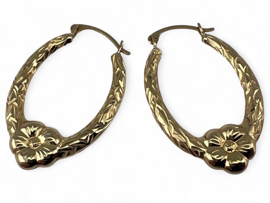 14K Flower Hoop Earrings
