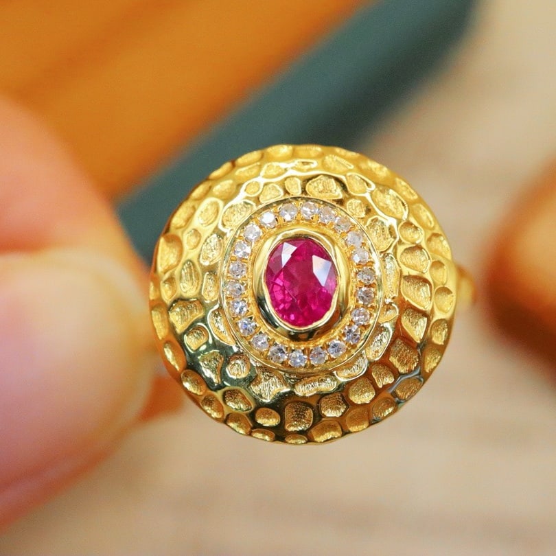 14k Gold 0.6 Ct Natural Ruby & Diamond Ring