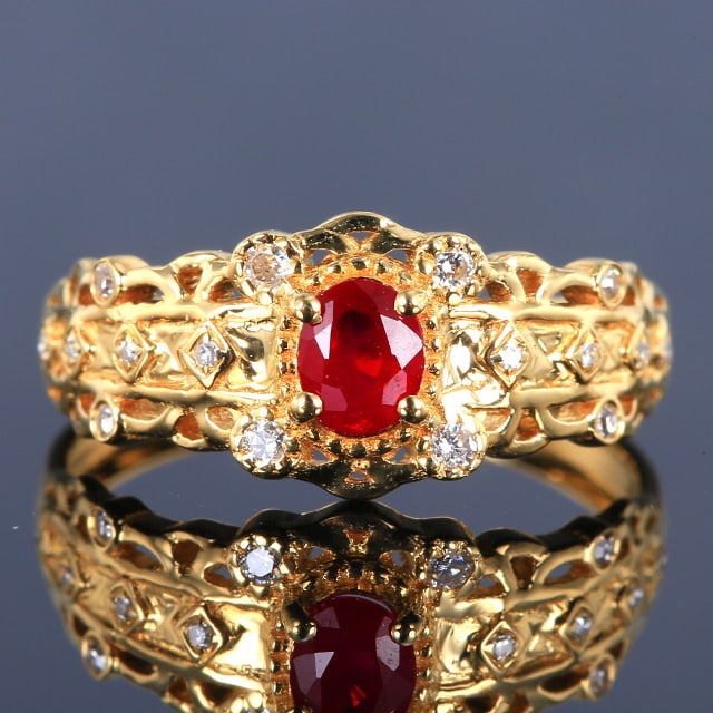 14k Gold 0.33 Ctw Vivid Red Natural Ruby & Diamond Ring
