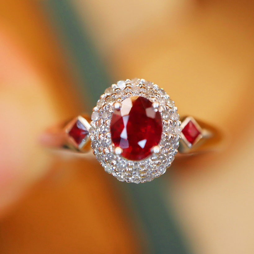 14k Gold 0.66 Ctw Vivid Red Natural Ruby & Diamond Ring