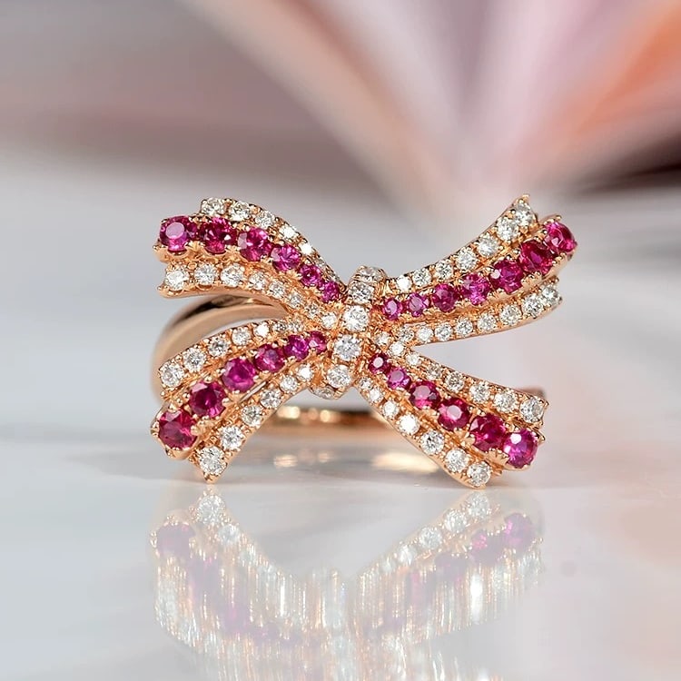 14k Gold 0.84 Ctw Natural Ruby & Diamond Ring