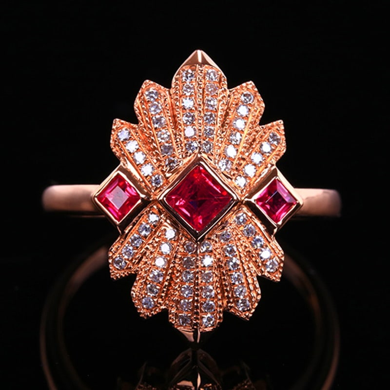 14k Gold 0.4 Ct Natural Ruby & Diamond Ring