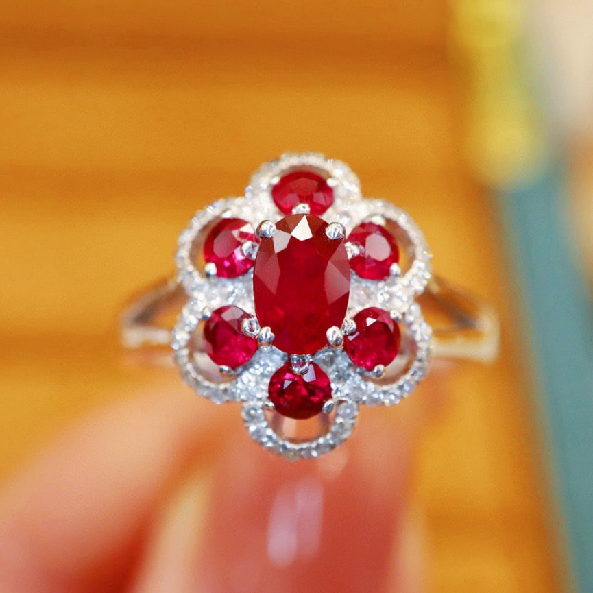 14k Gold 0.85 Ctw Natural Ruby & Ruby Ring