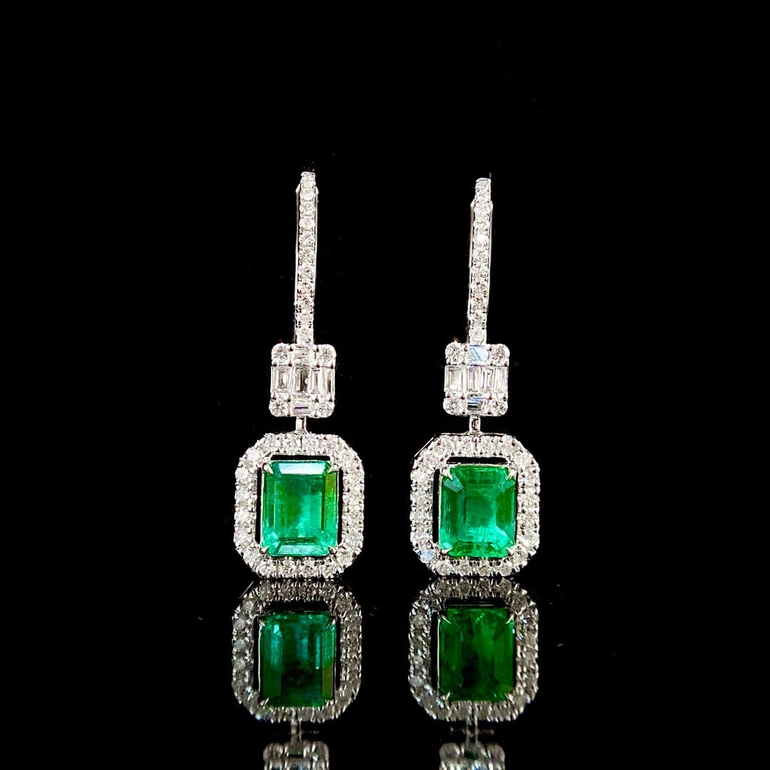 Sold14K GOLD 2.35 CTW VIVID GREEN NATURAL EMERALD & DIAMOND EARRINGSRef:230737031 Gold Content:14K Gold Main Gemstone:Emerald Number of stones:2 Shape:Octagonal Carat Weight:2ct Color:Vivid Green Treatment:Natural Cut Grade:G Adjacent Gemstone 2 : Diamond ShapSee Sold Price