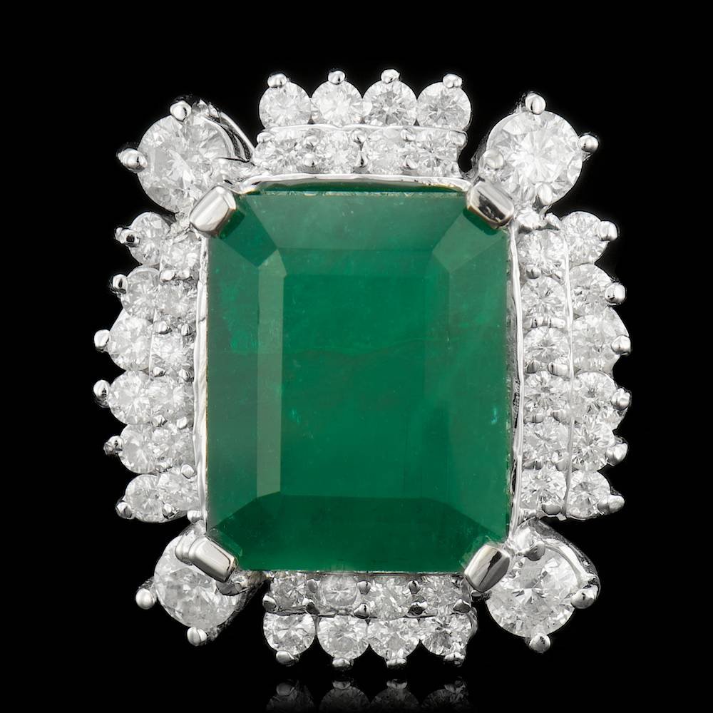 14k Gold 12.30ct Emerald 2.10ct Diamond Ring