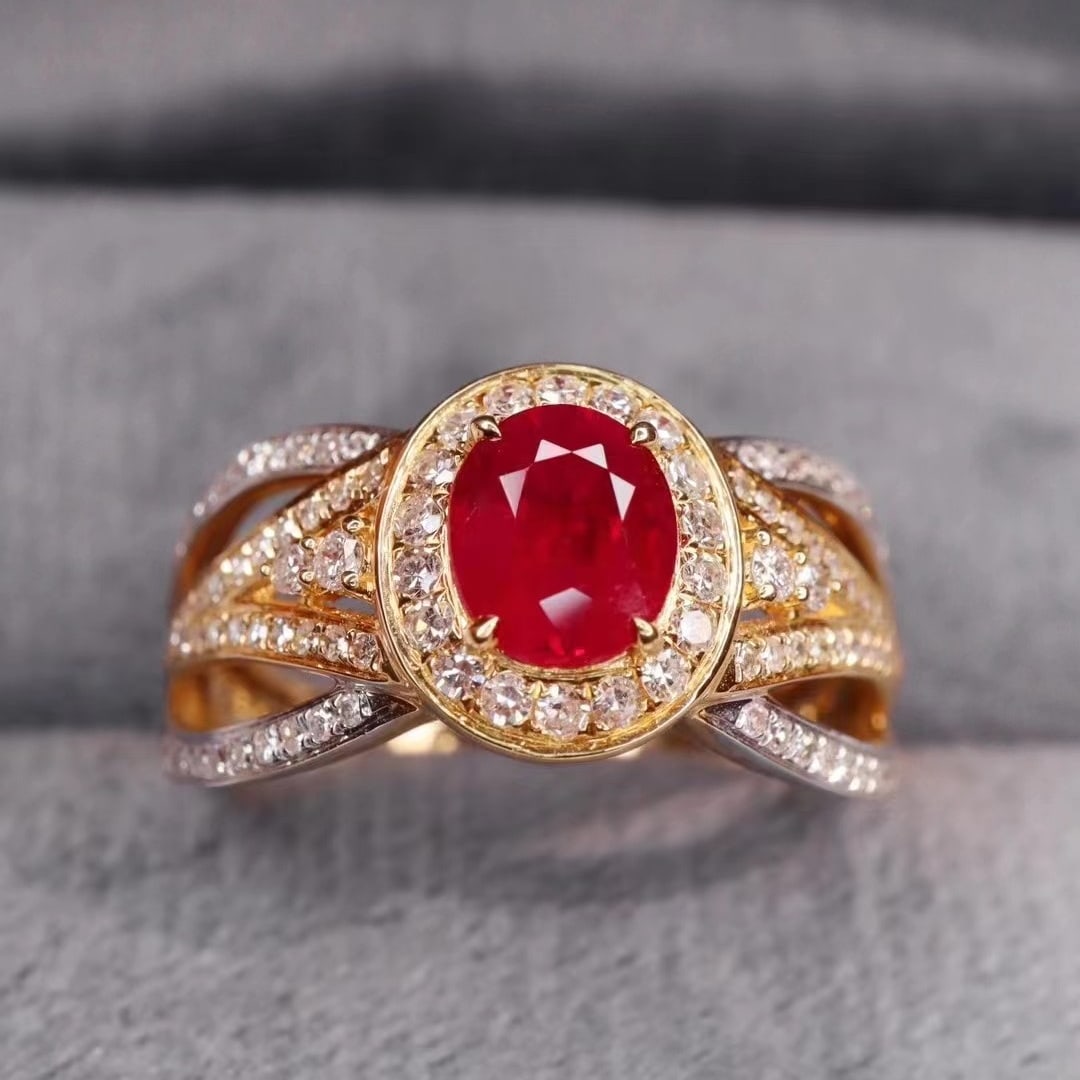 14k Gold 1.34 Ctw Vivid Red Natural Ruby & Diamond Ring