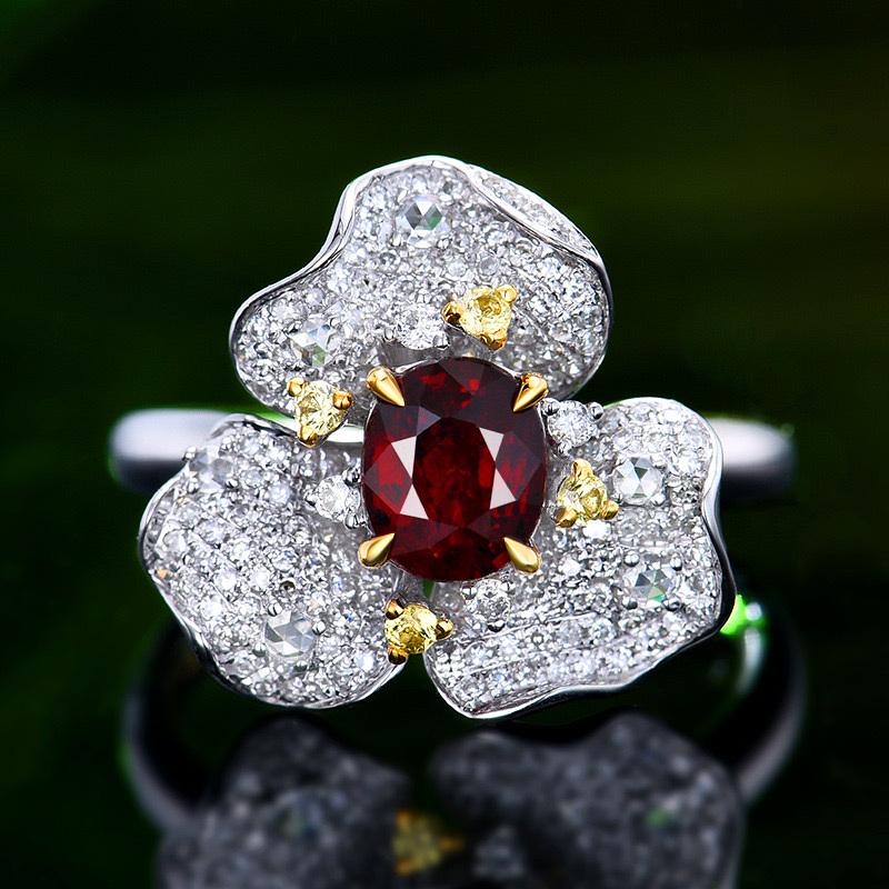 14k Gold 0.95 Ctw Natural Ruby & Diamond & Flowers Ring