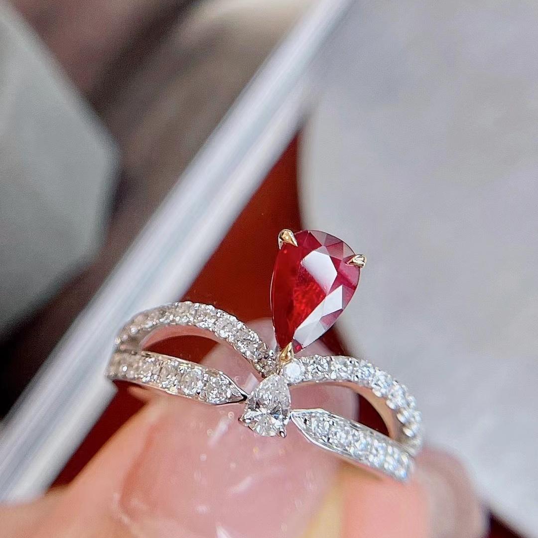 14k Gold 1.17 Ctw Vivid Red Natural Ruby & Diamond Ring