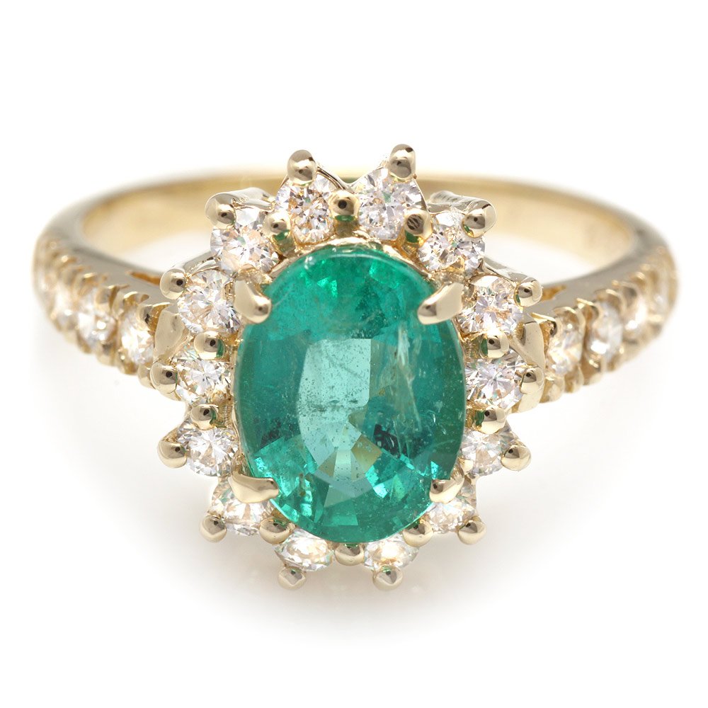 14k Gold 1.80ct Emerald 1.00ct Diamond Ring