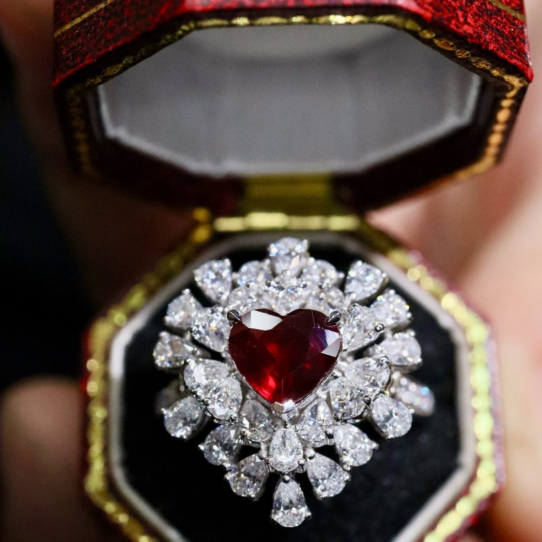 14k Gold 1.85 Ctw Vivid Red Natural Ruby & Lab Grown Diamond Ring
