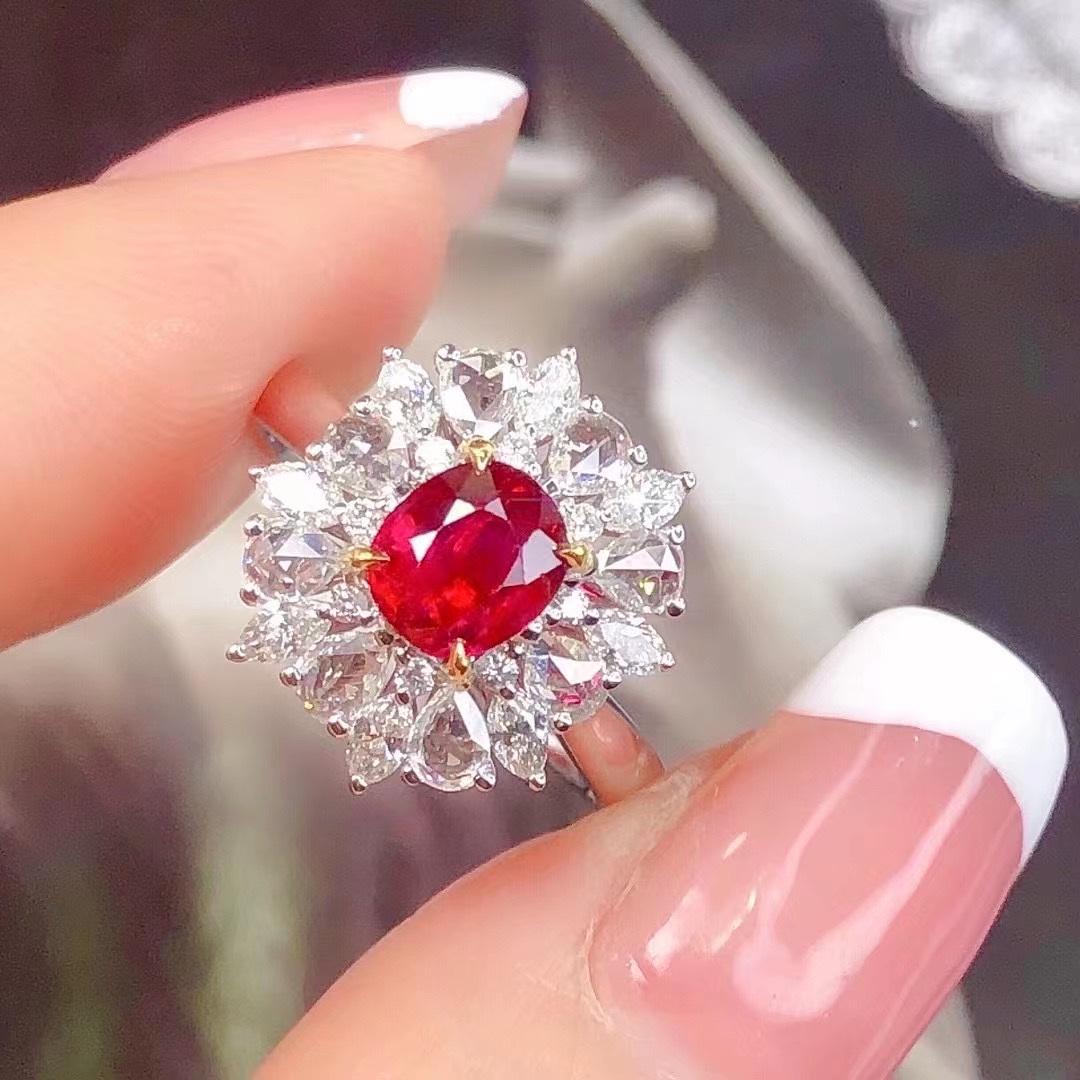 14k Gold 1.75 Ctw Vivid Red Natural Ruby & Diamond Ring