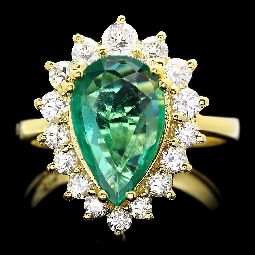 14k Gold 1.70ct Emerald 0.90ct Diamond Ring