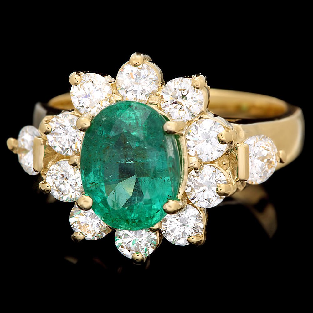 14k Gold 1.70ct Emerald 0.90ct Diamond Ring