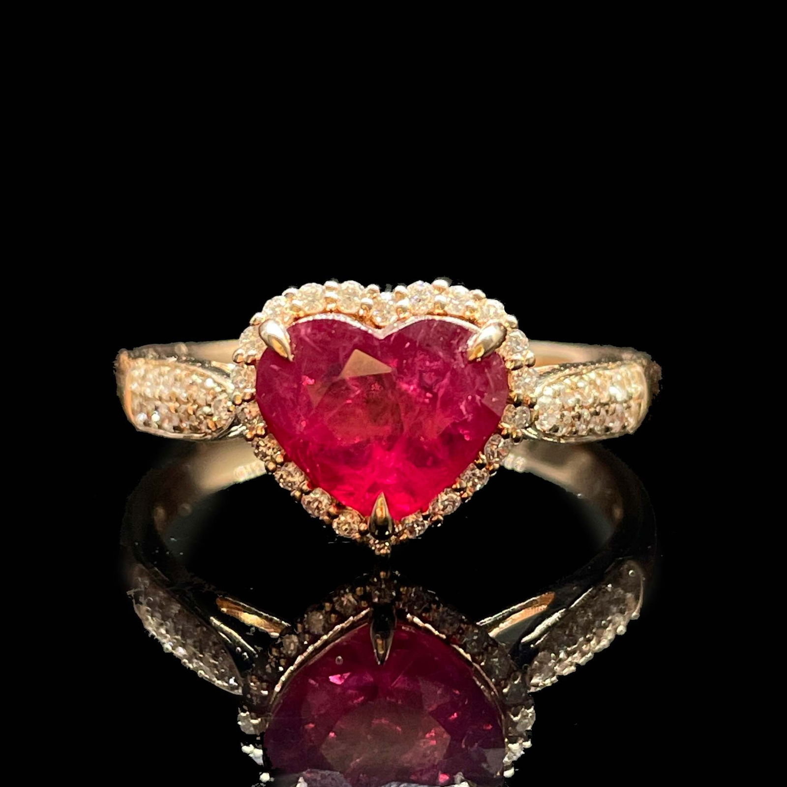 14k Gold 1.25 Ctw Vivid Red Natural Ruby & Diamond Ring