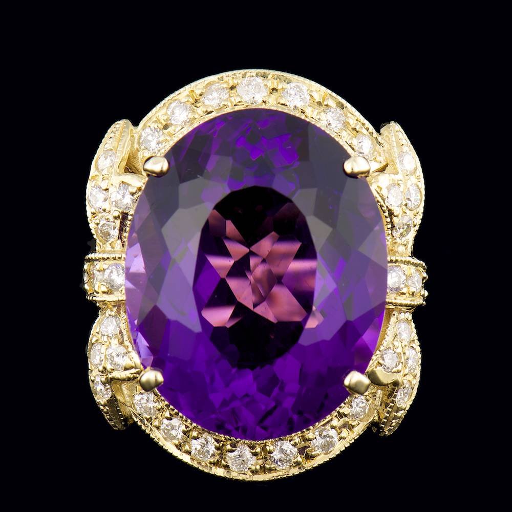 14k Gold 20.80ct Amethyst 0.80ct Diamond Ring
