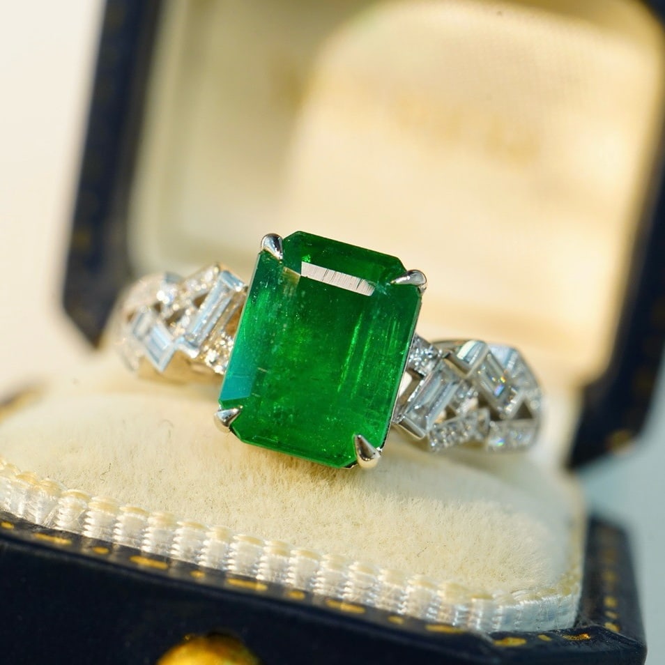 14k Gold 3.06 Ctw Vivid Green Natural Emerald & Diamond Ring
