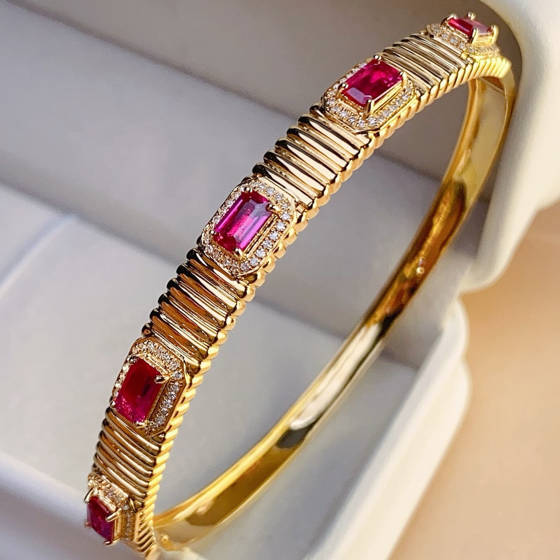 14k Gold 6.3 Ct Natural Ruby & Diamond Bangle