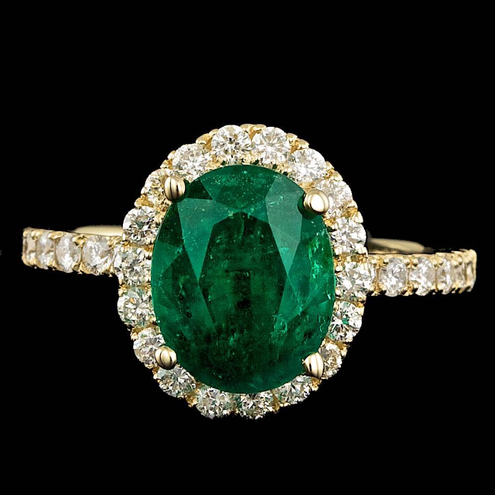 14k Gold 1.90ct Emerald 1.00ct Diamond Ring