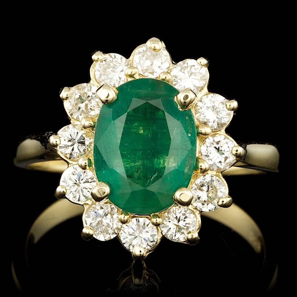 14K Yellow Gold 2.52ct Emerald and 1.06ct Diamond Ring