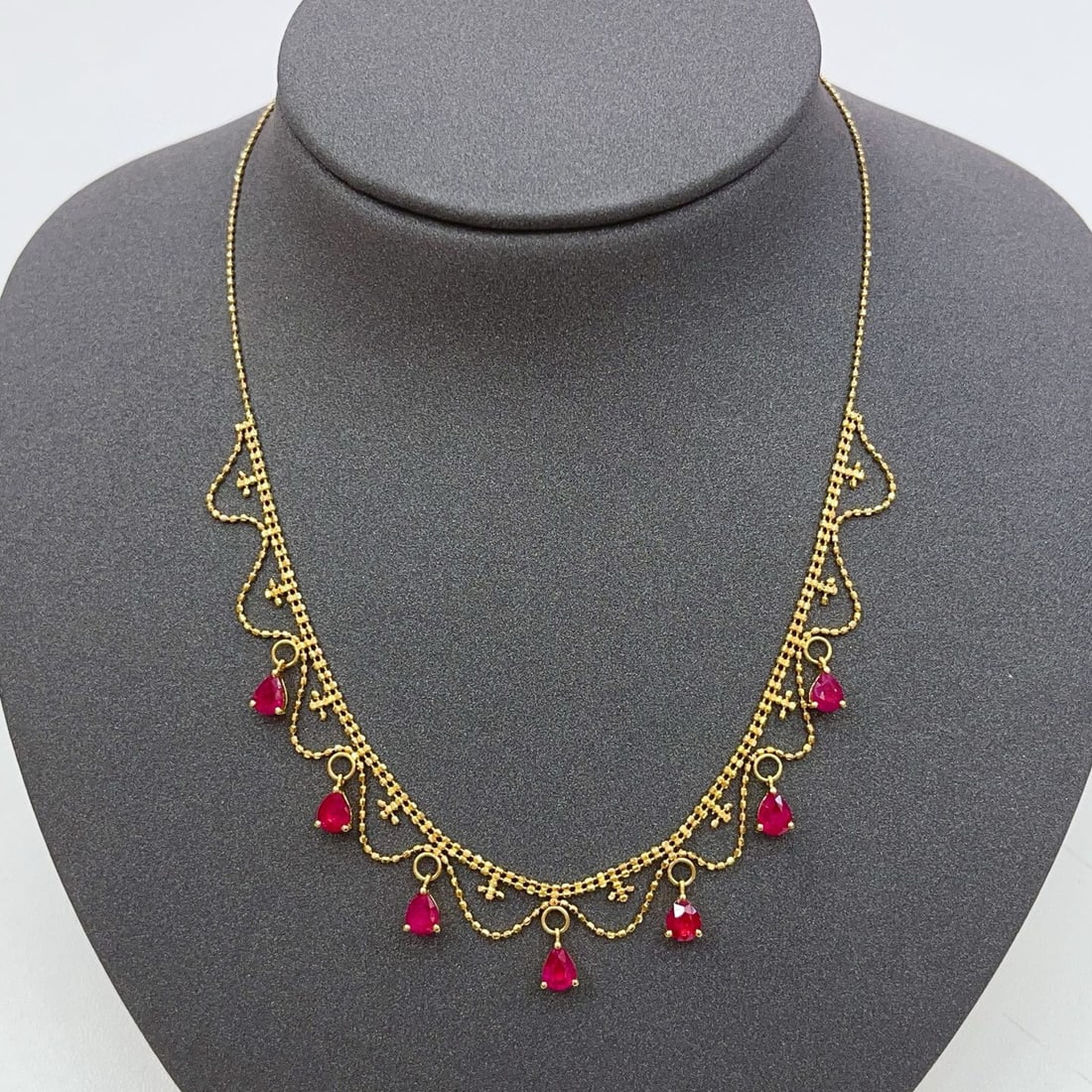 14k Gold 1.80 Ct Natural Ruby Necklace