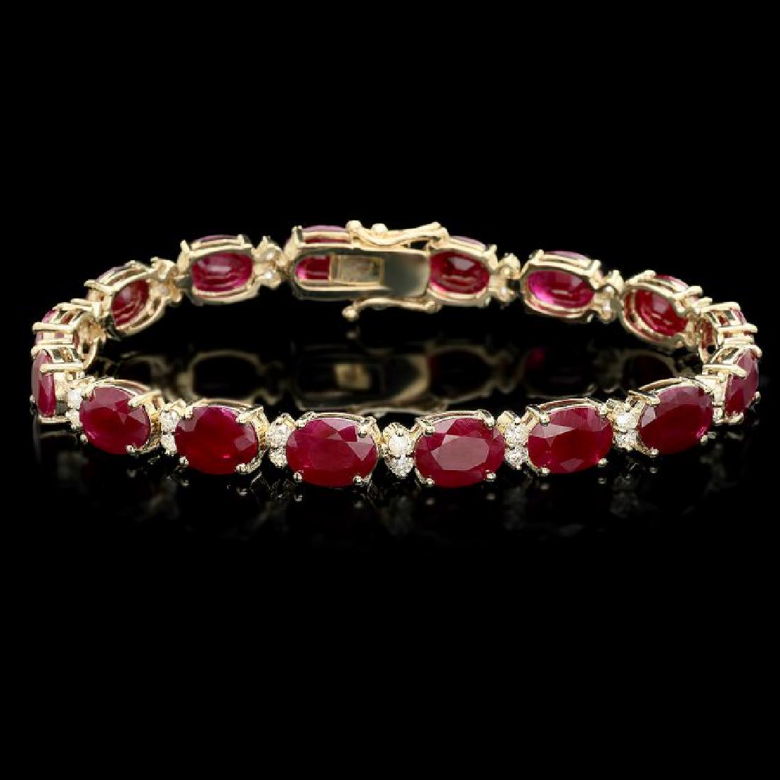 14k Gold 16.00ct Ruby 0.55ct Diamond Bracelet
