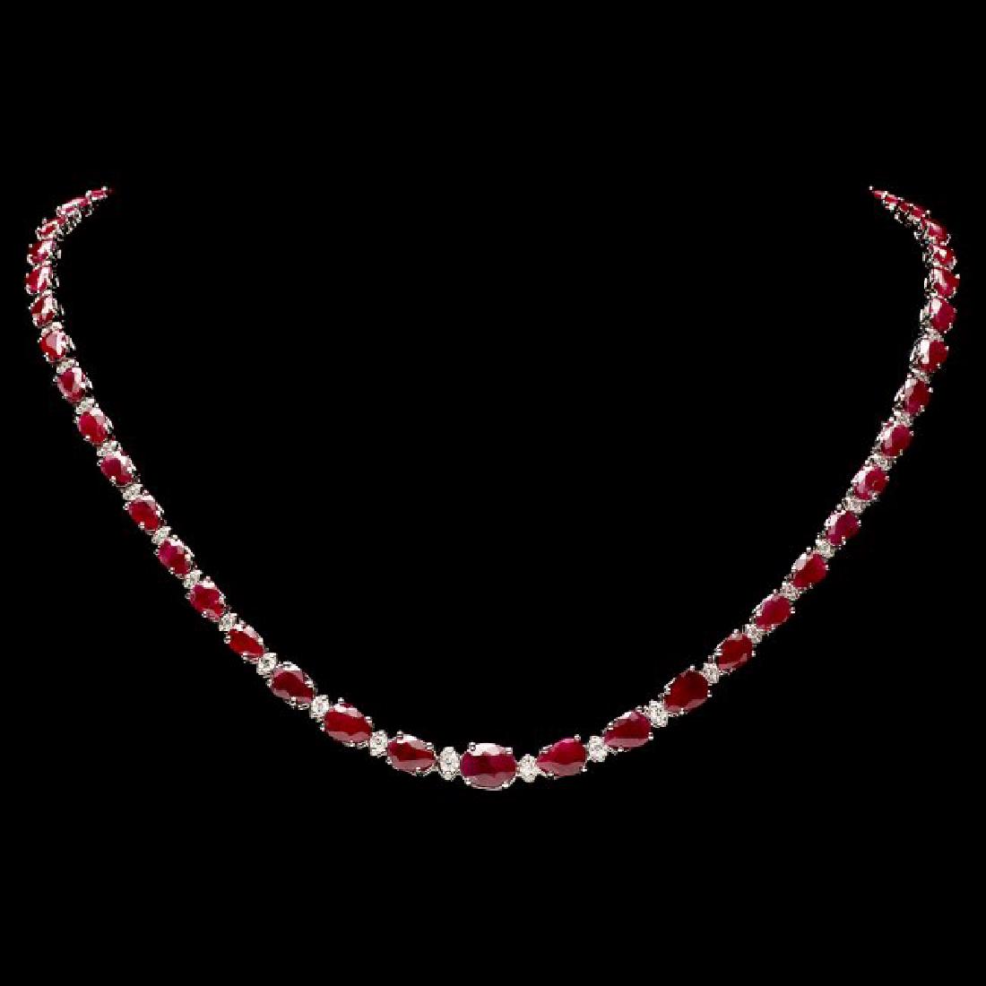 14k Gold 30.00ct Ruby 1.60ct Diamond Necklace