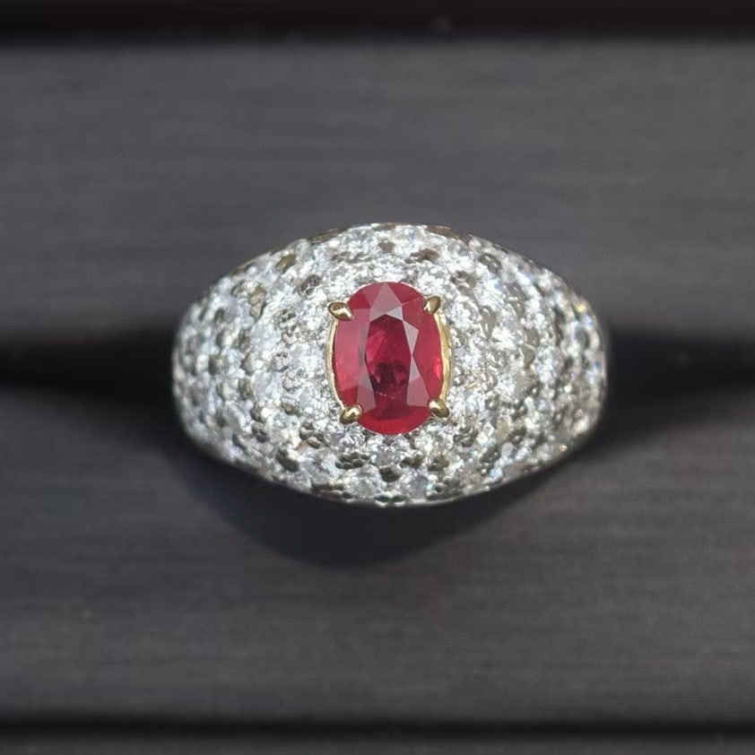 14k Gold 1 Ct Vivid Red Natural Ruby & Diamond Ring