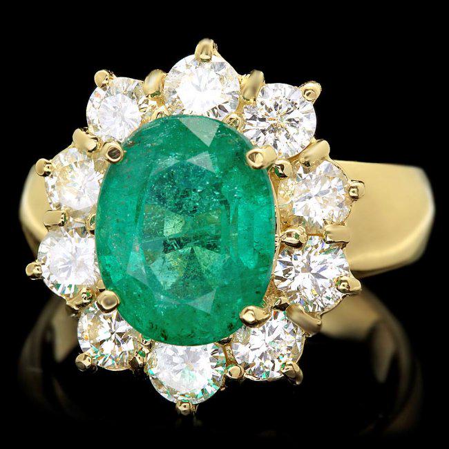 14k Gold 2.50ct Emerald 1.36ct Diamond Ring