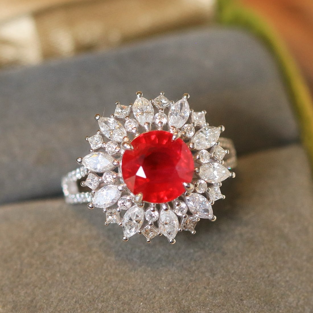 14k Gold 0.66 Ctw Vivid Red Natural Ruby & Diamond Ring