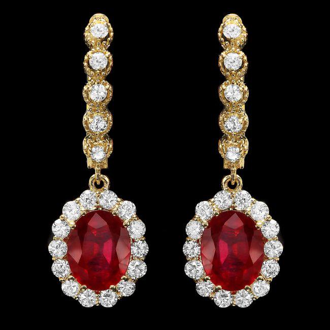14k Gold 8.00ct Ruby 1.35ct Diamond Earrings