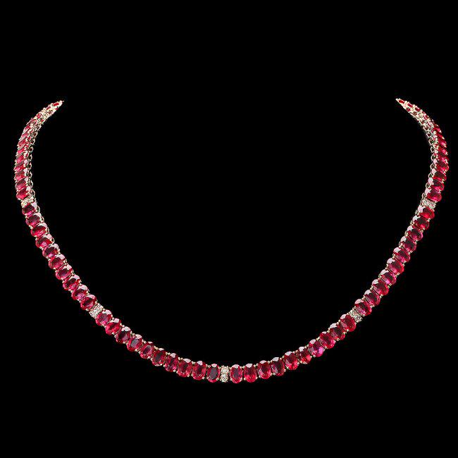 14k Gold 33.00ct Ruby 1.55ct Diamond Necklace