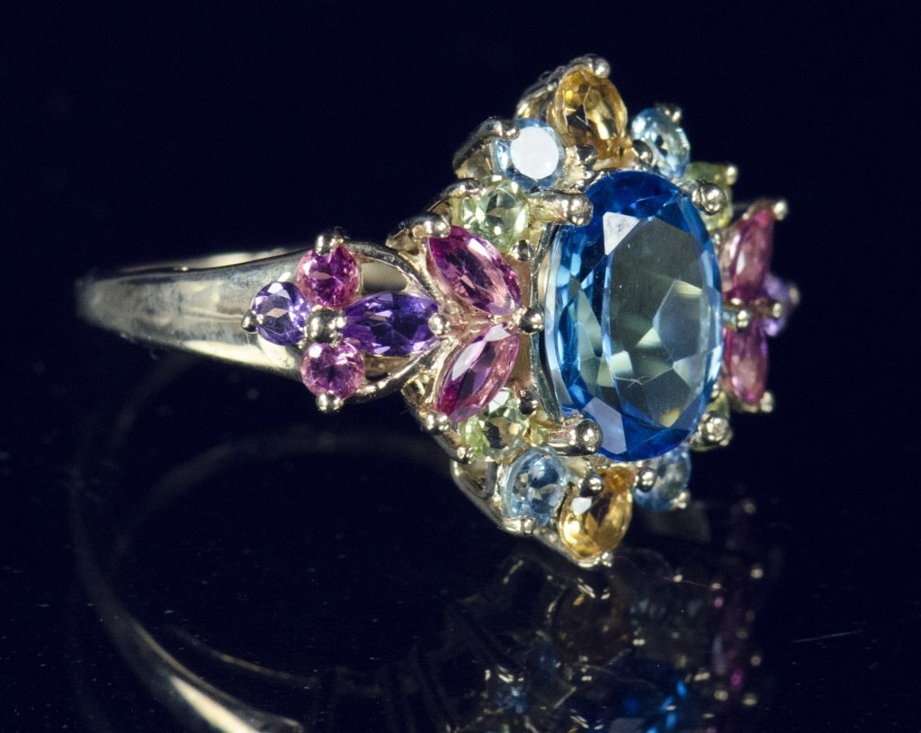 14K Gold 7 Semi-Precious Stone Ring