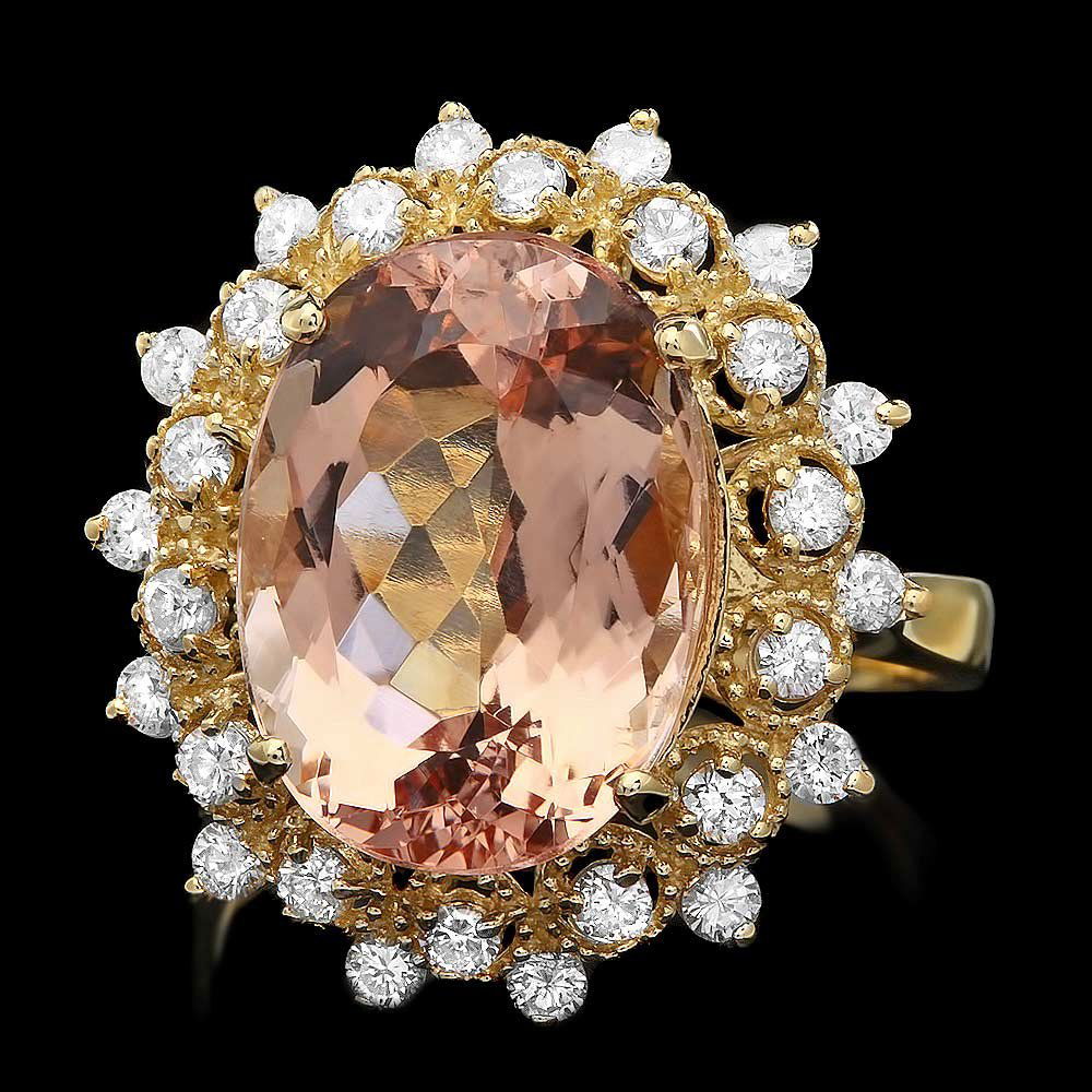 14k Gold 8.80ct Morganite 1.10ct Diamond Ring