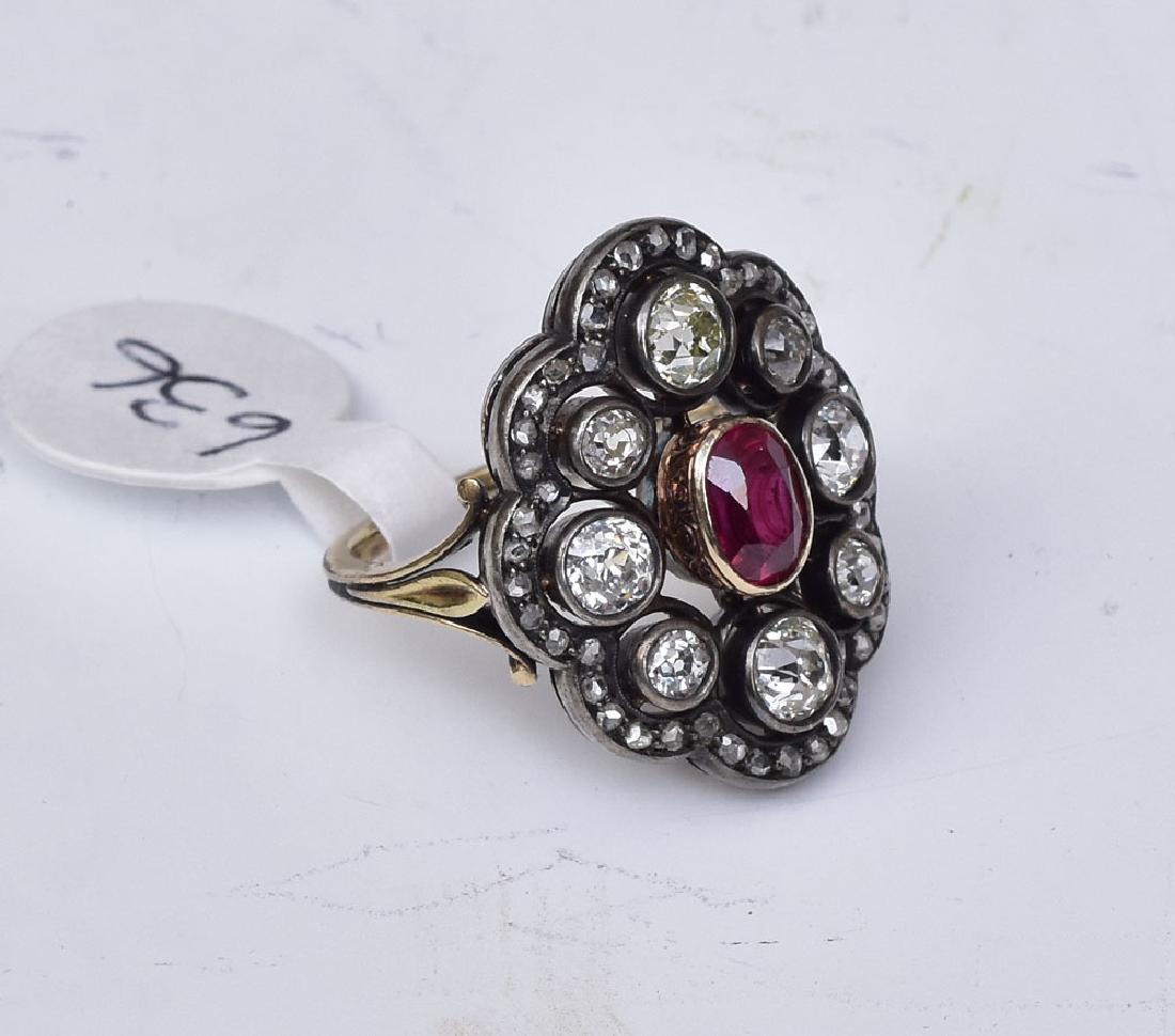 Stunning 18K Yellow Gold Silver Ruby Diamond Ring 1.80 Ct