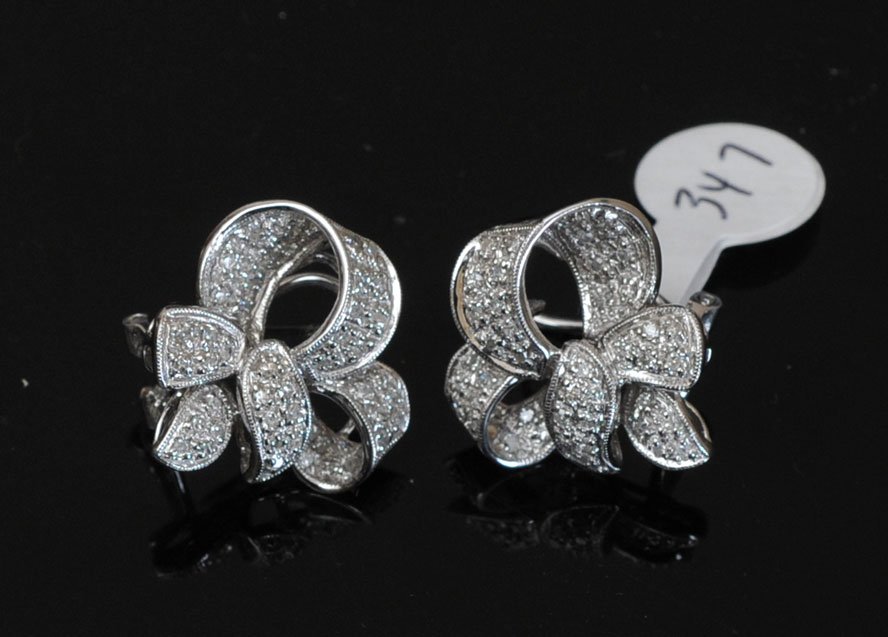 Flower Design Diamonds Earrings .86Ct 14k W/g