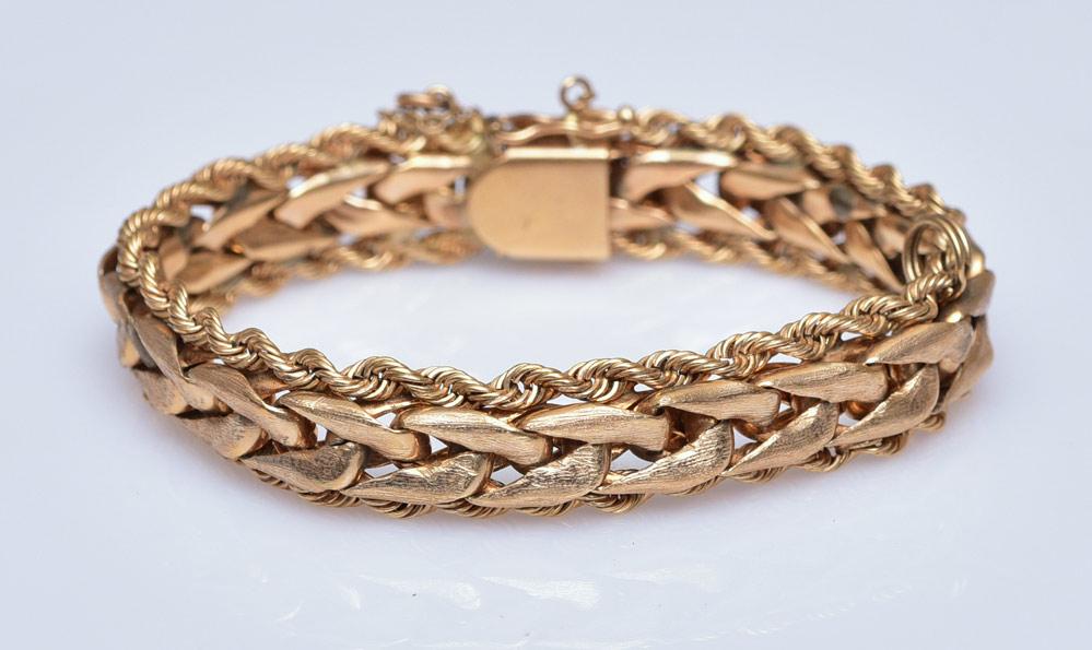 Estate LOVE Chain Link Bracelet 14K Yellow Gold 28.90 GramsX-Link Bar Chain Bracelet 14K Yellow Gold, 6.4 Inches, 5.38 GramsA 14k gold bracelet, ItalyFeb 15, 2026A 24K Gold Bracelet6 days Left14K GOLD MENS BRACELET MARKED 585, 37.4 GRAMSFeb 15, 2026A 14K Gold Bracelet6 days Left14K YELLOW GOLD ROUND LINK FLEXIBLE CHAIN BRACELET.Feb 12, 2026Sterling Silver Gold Tone Bracelet12 hrs LeftSterling Silver Gold Tone Bracelet12 hrs LeftSterling Silver Gold Tone Bracelet12 hrs LeftA 14K Gold Bracelet6 days LeftSterling Silver Gold Tone BraceletFeb 12, 2026Womens Vintage Estate 14K Yellow Gold BraceletMar 05, 202618K (750) YELLOW GOLD BRAIDED, DOMED FLEXIBLE STRAP BRACELET.Feb 12, 2026Sterling Silver Gold Tone Bracelet12 hrs LeftMens Vintage Estate 14K Yellow Gold Rope Bracelet23 hrs Left