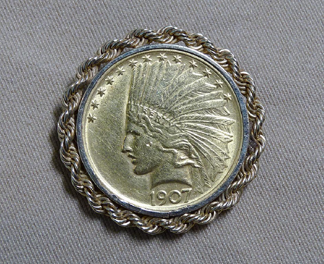 14K Gold Coin Brooch