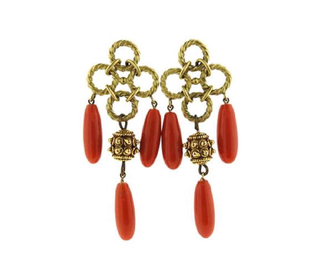 NEAPOLITAN Vintage Vivid Red Coral Dangle-Drops Earrings In 18Kt Yellow GoldPlatinum Auction Group4.3(68)$5001 day Left