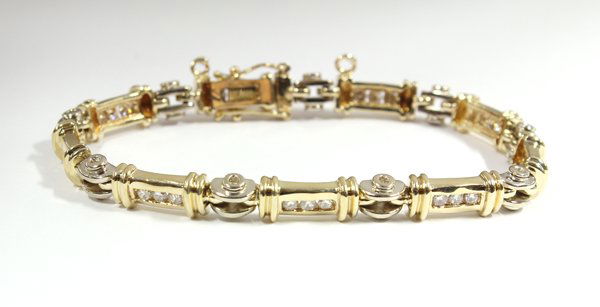 18k Yellow White Gold Diamond H Link Buckle Bracelet 0.80ctw