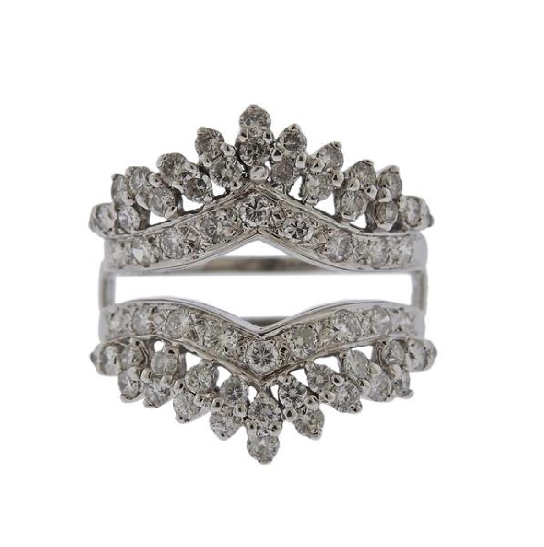 Sold18K GOLD & DIAMOND RING ENHANCER GUARD & GIA APPRAISAL18K WHITE GOLD & DIAMOND RING ENHANCER GUARD WITH A GIA APPRAISAL: 18k white gold ring guard or enhancer mounted with thirty-six marquise and baguette cut diamonds totaling 1.09cts, VS Clarity and J CSee Sold Price
