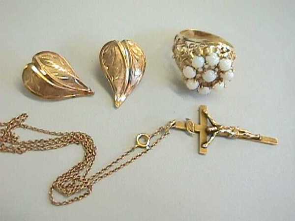 14K Gold Earrings, Cross, & Opal Ring